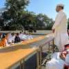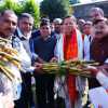 मुख्यमंत्री ने सुनी किसानों की समस्याएं, लॉन में बैठकर लिया गन्ने का स्वाद।
