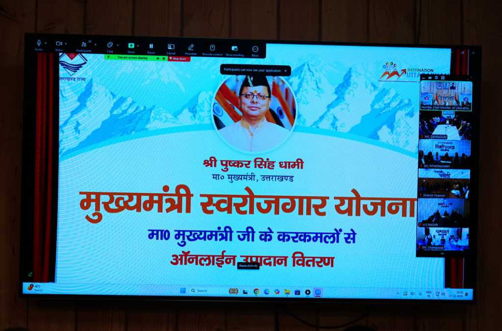 संवादसूत्र देहरादून: मुख्यमंत्री पुष्कर सिंह धामी ने बुधवार को मुख्यमंत्री स्वरोजगार योजना के अंतर्गत 3848 लाभार्थियों के बैंक खातों में 33.22 करोड़ रुपये की धनराशि का ऑनलाइन माध्यम से वितरण किया। मुख्यमंत्री आवास से आयोजित कार्यक्रम में उन्होंने कहा कि राज्य सरकार का स्पष्ट संकल्प है कि उत्तराखंड का युवा नौकरी ढूंढने वाला नहीं, बल्कि नौकरी देने वाला बने।