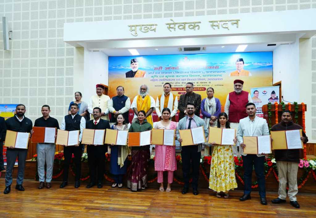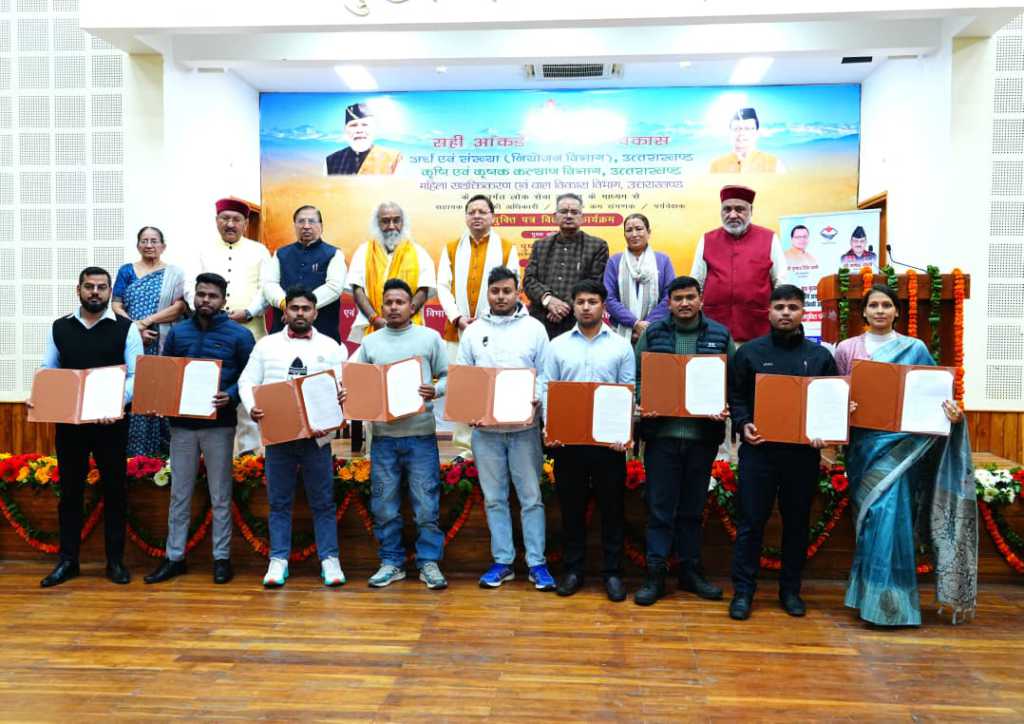 संवादसूत्र देहरादून: मुख्यमंत्री पुष्कर सिंह धामी ने गुरूवार को मुख्यमंत्री कैम्प कार्यालय स्थित मुख्य सेवक सदन में आयोजित कार्यक्रम में लोक सेवा आयोग के माध्यम से चयनित अर्थ एवं संख्या, कृषि एवं उद्यान तथा महिला सशक्तिकरण एवं बाल विकास विभाग के 178 अभ्यर्थियों को नियुक्ति पत्र प्रदान किए। जिसमें अर्थ एवं संख्या विभाग के 117, कृषि विभाग के 12 उद्यान विभाग के 30 तथा महिला सशक्तिकरण एवं बाल विकास विभाग के 19 अभ्यर्थी शामिल है। उन्होंने नवनियुक्त अभ्यर्थियों को बधाई देते हुए विश्वास व्यक्त किया कि सभी ईमानदारी, निष्ठा एवं समर्पण के साथ दायित्वों का निर्वहन कर उत्तराखंड को विकसित, आत्मनिर्भर एवं देश के अग्रणी राज्यों में शामिल करने के संकल्प को साकार करने में महत्वपूर्ण भूमिका निभाएँगे।