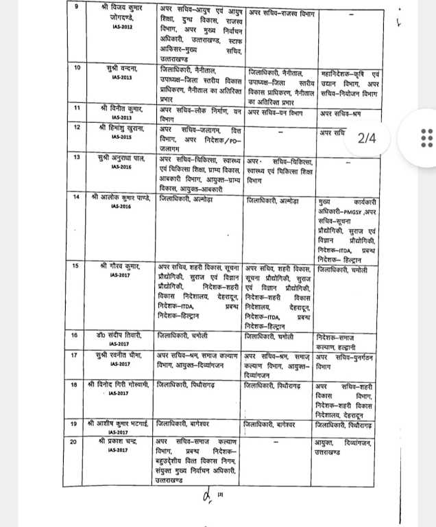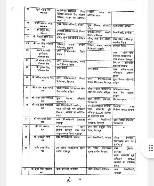 44 आईएएस,आईएफएस और पीसीएस अफसरों के तबादले, देखें पूरी सूची।