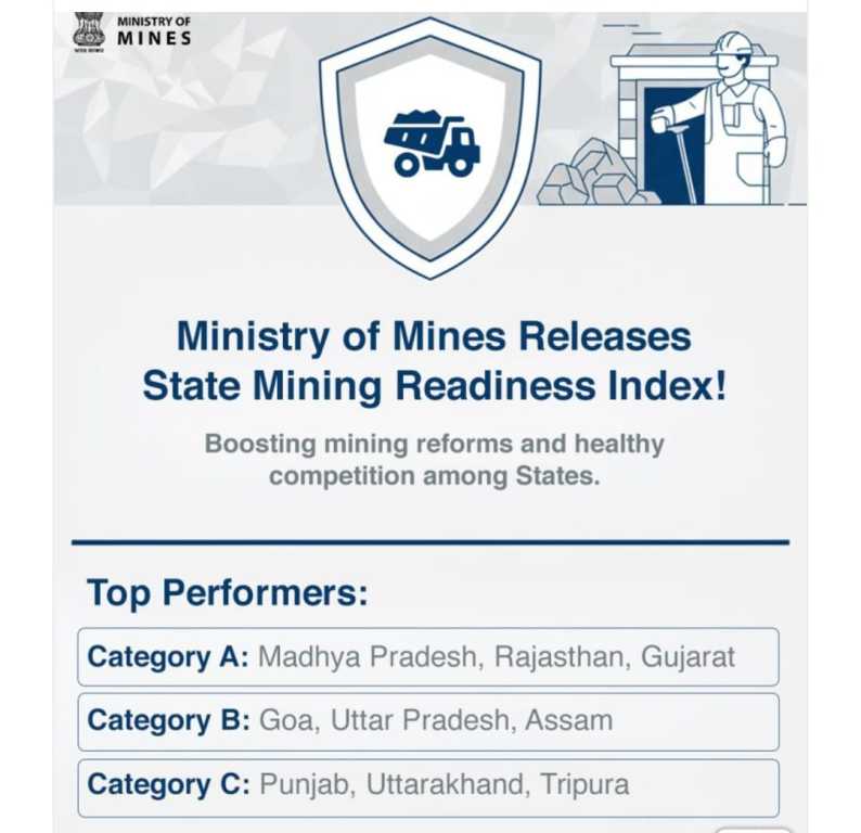खनन मंत्रालय के अनुसार, यह सूचकांक राज्यों में खनन क्षेत्र में बेंचमार्किंग और सकारात्मक प्रतिस्पर्धा को प्रोत्साहित करने का कार्य करेगा, जिससे देशभर में खनन सुधारों की गति और पर्यावरण-अनुकूल नीतियों के क्रियान्वयन को और बल मिलेगा।